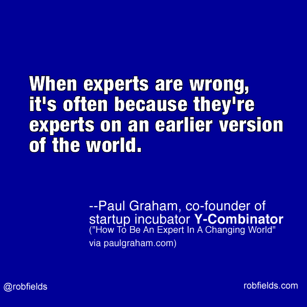 –Paul Graham, co-founder of startup incubator Y-Combinator, “How To Be An Expert In A Changing World”